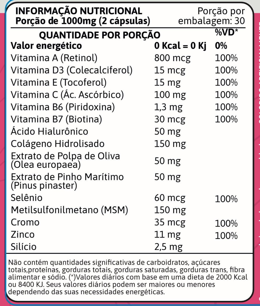 Esta fórmula clinicamente comprovada dá suporte a cabelos visivelmente mais grossos, cheios e fortes nutre profundamente a pele, promovendo suavização das linhas finas e aumento da firmeza e elasticidade e é uma adição perfeita à sua rotina diária de bem-estar.